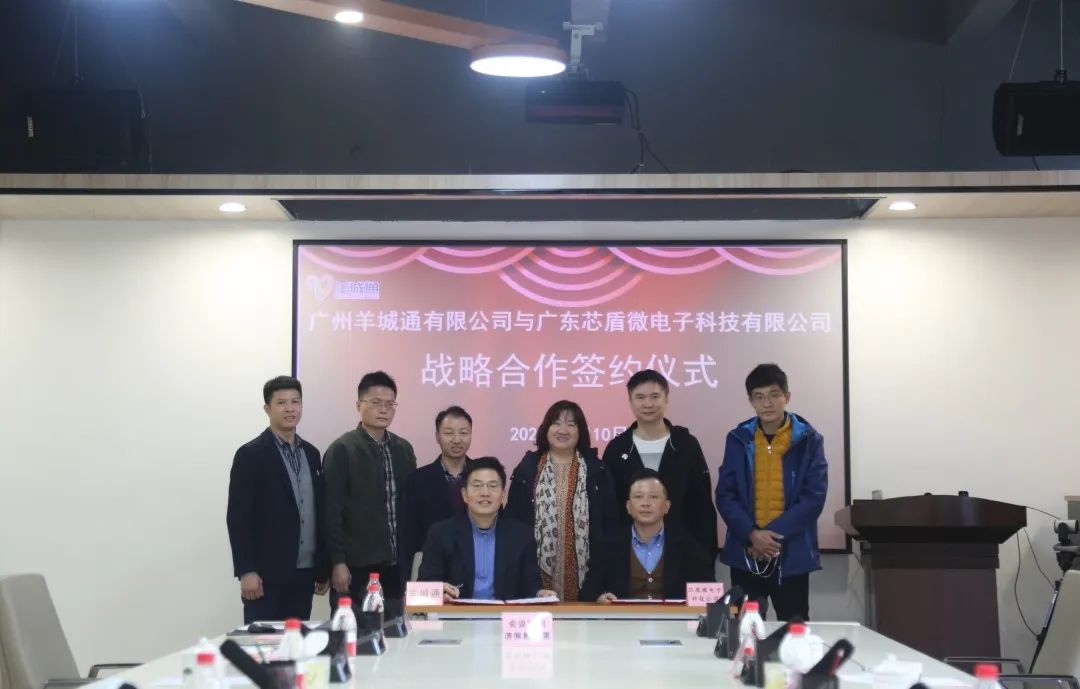 2023年1月10日上午,广州羊城通有限公司(下称“羊城通公司”)与广东芯盾微电子科技有限公司(下称“广东芯盾”)签订战略合作框架协议。双方拟在城市轨道交通、城市公共交通、大湾区城际交通的信息化、数字化、智能化技术研发与产品应用等领域展开全面、深入的合作,实现资源整合、优势互补、相互促进、共同发展。广东芯盾董事长陈竹、羊城通公司副总经理谭猛等领导出席签约仪式。
